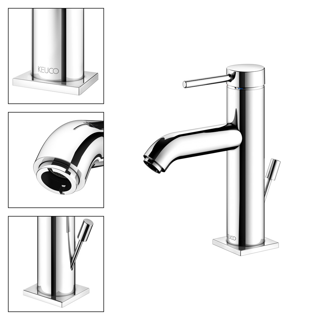 KEUCO Waschtisch-Einhebelmischer 100 IXMO Soft Ausladung 114mm, mit Ablaufgarnitur, verchromt