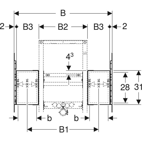 zum Einbau in teil- oder raumhohe Vorwandinstallationen, zum Einbau in raumhohe Installationswände, zum Einbau in teil- oder raumhohe Duofix Systemwände, zur Befestigung zwischen Duofix Elementen für Waschtisch und Ständern, zum Befestigen von Waschtischen mit Unterschrank, zur Verwendung bei einer zentrischen Auslaufarmatur, auf Geberit ONE Waschtische mit Unterschränken abgestimmte Breite, auf Duofix Elementbefestigungstraversen für Ständerabstand ab 60 cm abgestimmte Breite, Montageplatte passend auf Elementbreite 44 oder 50 cm zugeschnitten, Montageplatte aus Furnierholz, wasserfest verleimt, Baustoffklasse B2 nach DIN 4102-1, bzw. Klasse D-s2, d0 nach DIN EN 13501-3, Formaldehydabgabe Klasse A nach EN 1084, bzw. Klasse E 1 entsprechend nach EN 13936, mit 2 Montageplatten mit Befestigungswinkeln, 2 Befestigungswinkel und Befestigungsmaterial