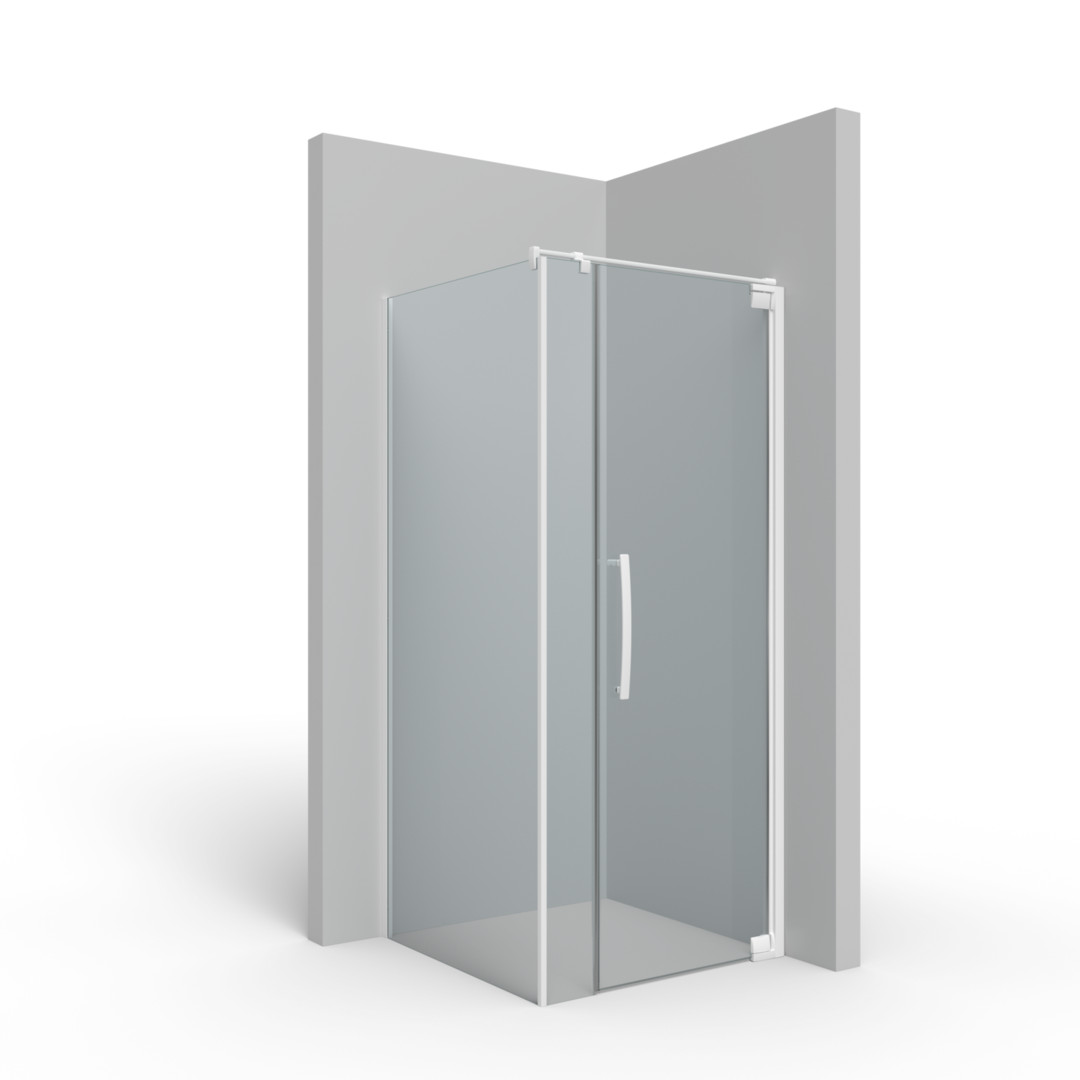 Pendeltür an Fixteil, Falttür an Fixteil, Glas 8 mm ESG, Standardhöhe 200 cm bzw. plus 3 cm Verstrebung, PALM.free, PALM.fix, PALM.pro, PALM.isi-clean, optional: PALM.nano, PALM.care, PALM.magic, durchgehendes Wandbefestigungsprofil mit Verstellbereich