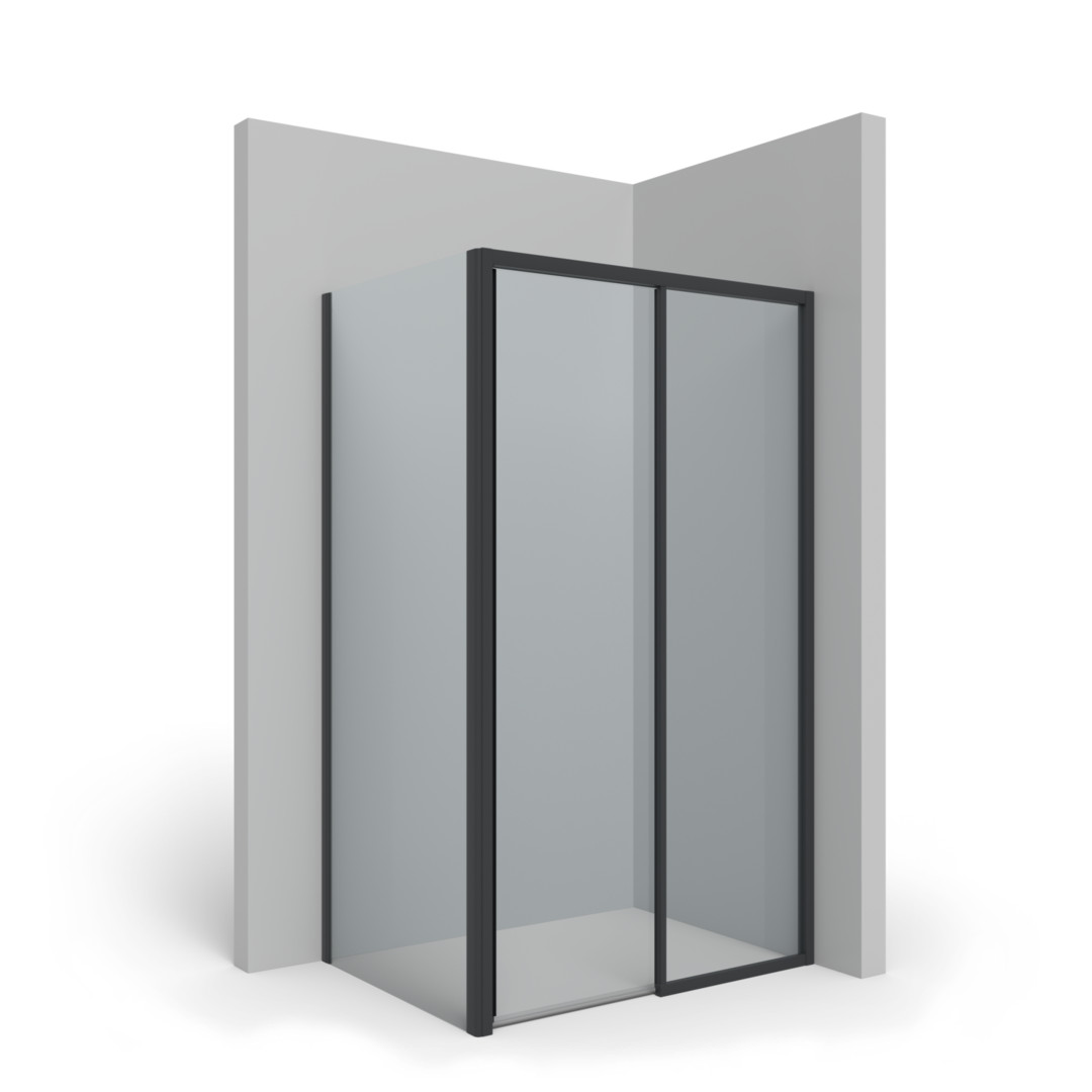 Palme Schiebetür mit Seitenteil Drive 1.0 1185 x 1800 mm, rechts, ESG transparent, schwarz, 2-teilig, barrierefrei