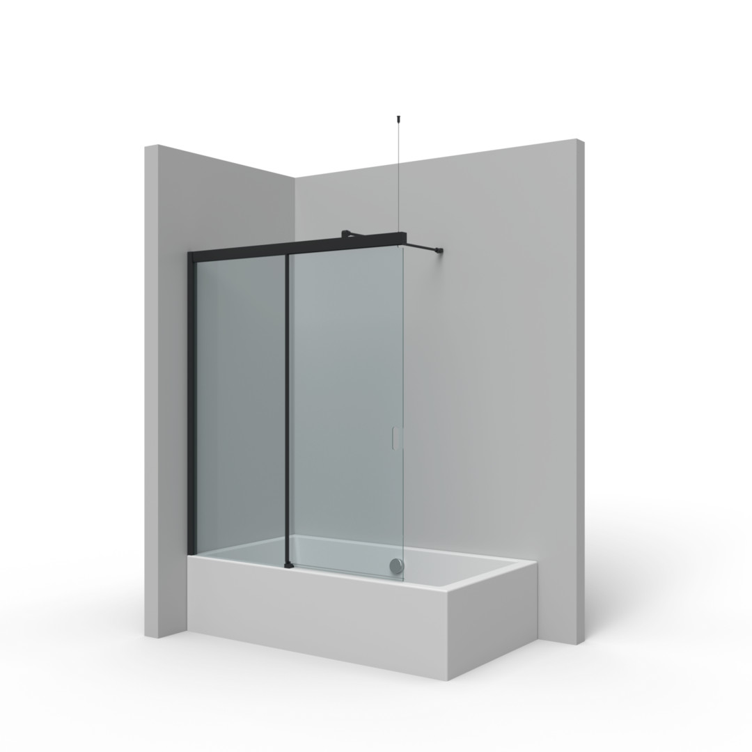 Palme Wannenschiebetür Piana X-Free 2-teilig, Drahtseil, 158,5 x 160 cm, links, AK ESG nano, schwarz