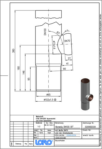 LORO X Reduzier-Abzweig DN 100/70, 87Grad, mit Muffe, reduziertem Einschubende, Stahl W553860