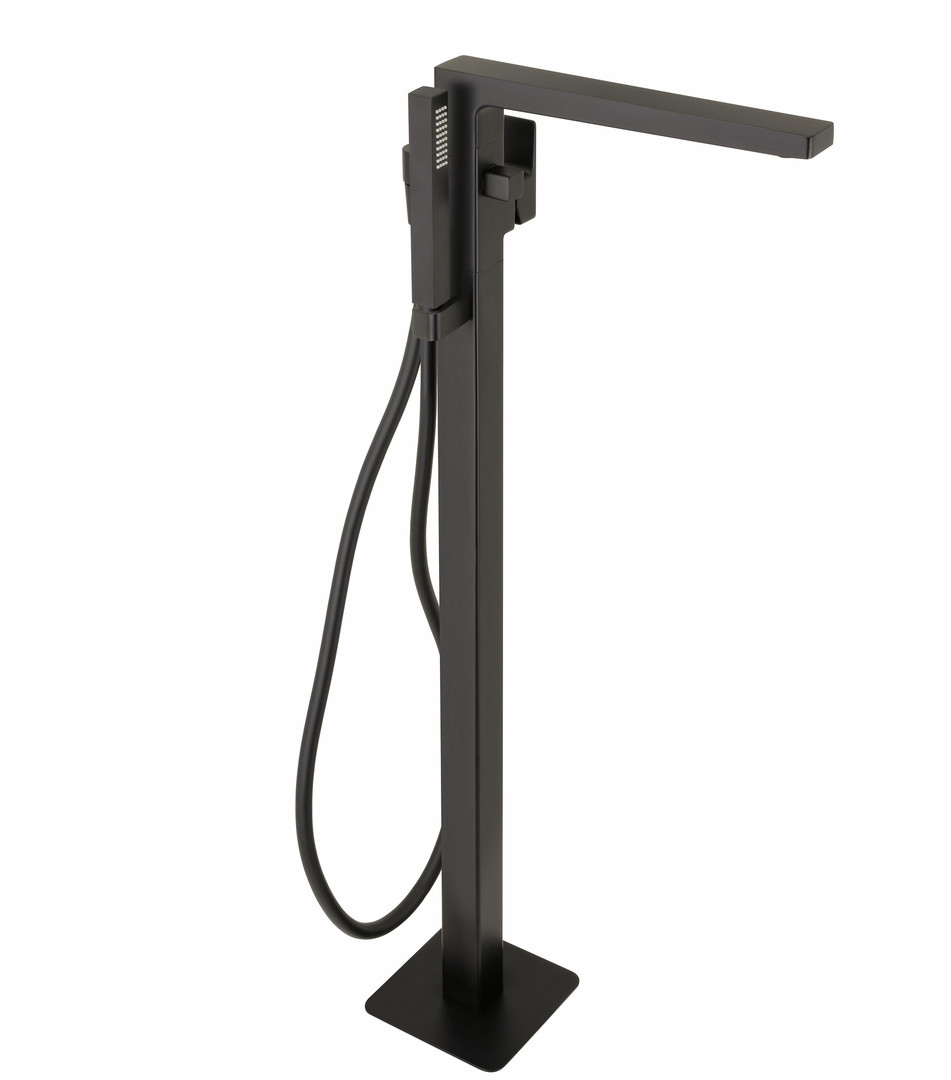 Herzbach Fertigmontageset Ceo Wanneneinlaufsäule, bodenstehend, mit Brausegarnitur, schwarz matt
