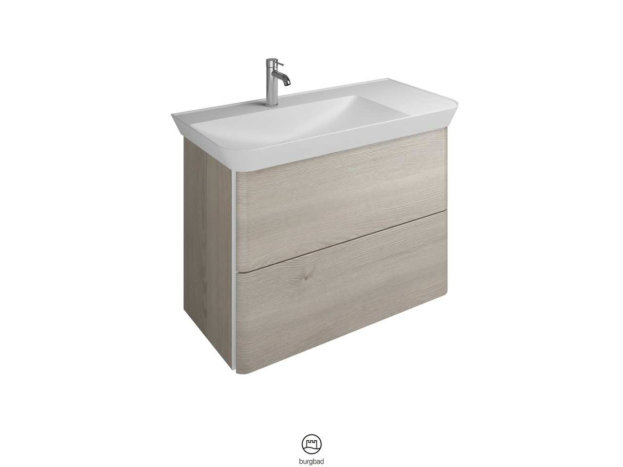 Burgbad Mineralguss-Waschtisch Unterschrank-Set Iveo 100 x 72,1 x 49,2 cm, Thermo, 2 Auszüge W507716