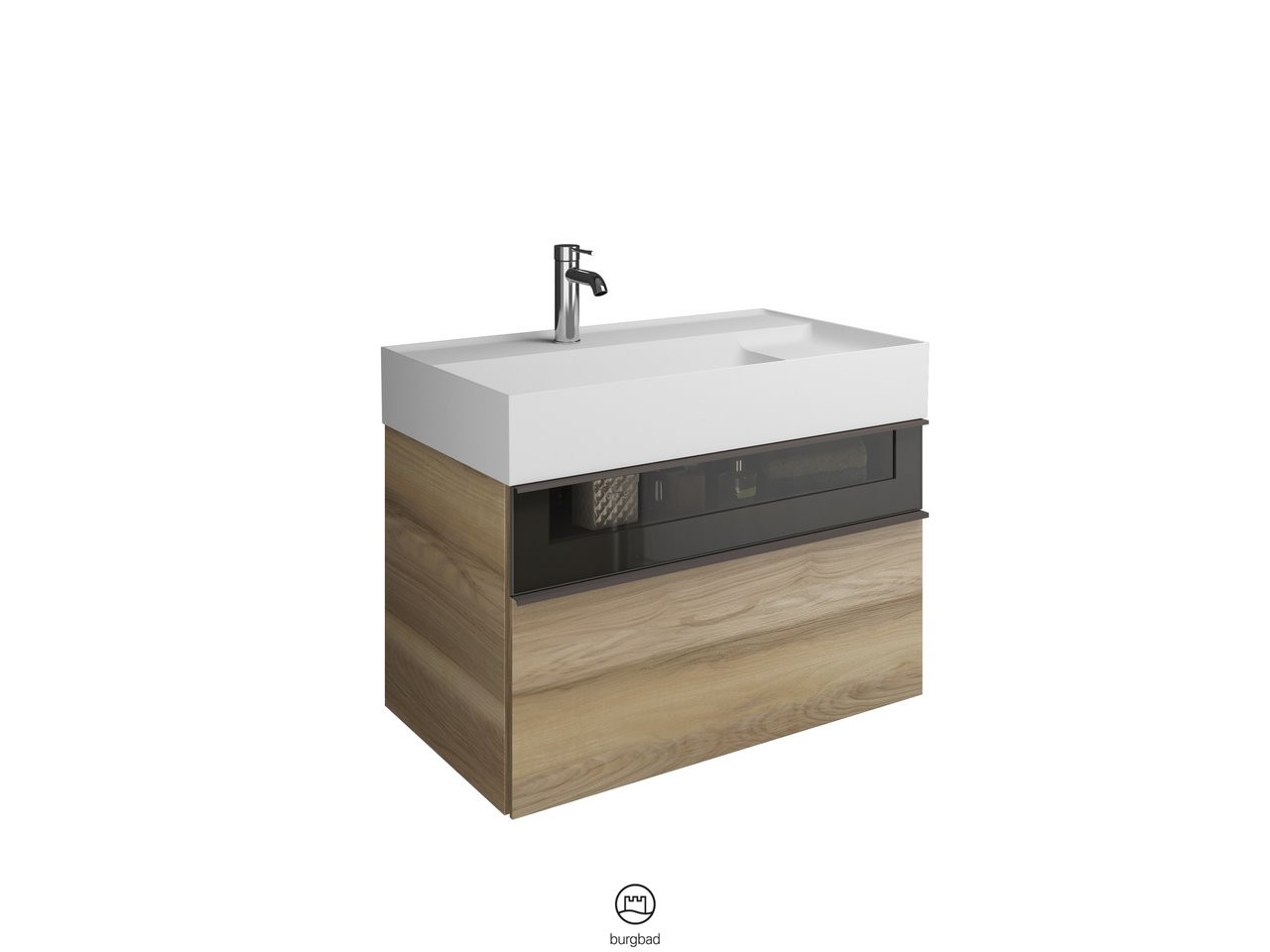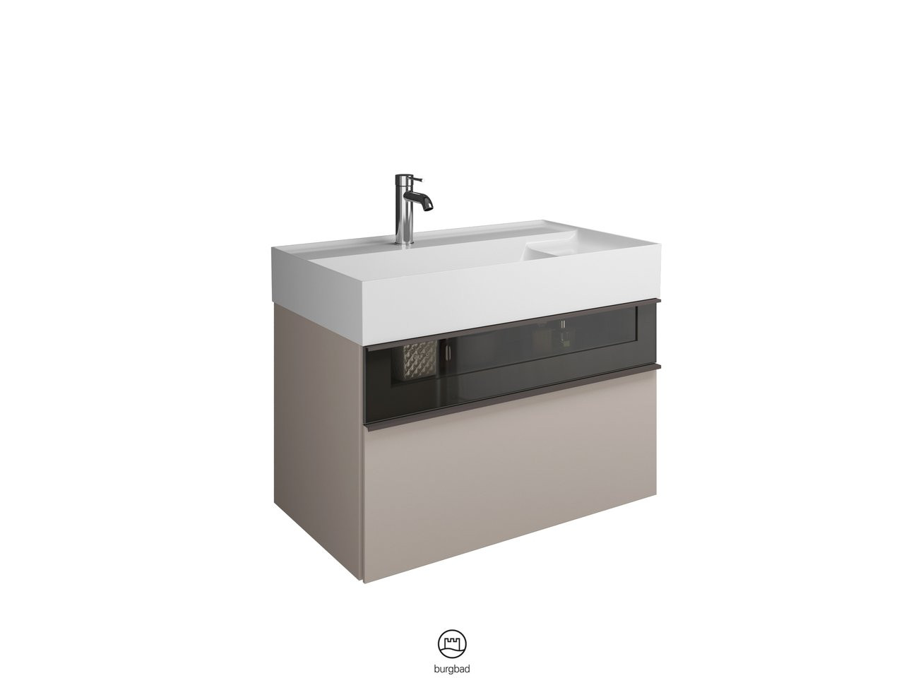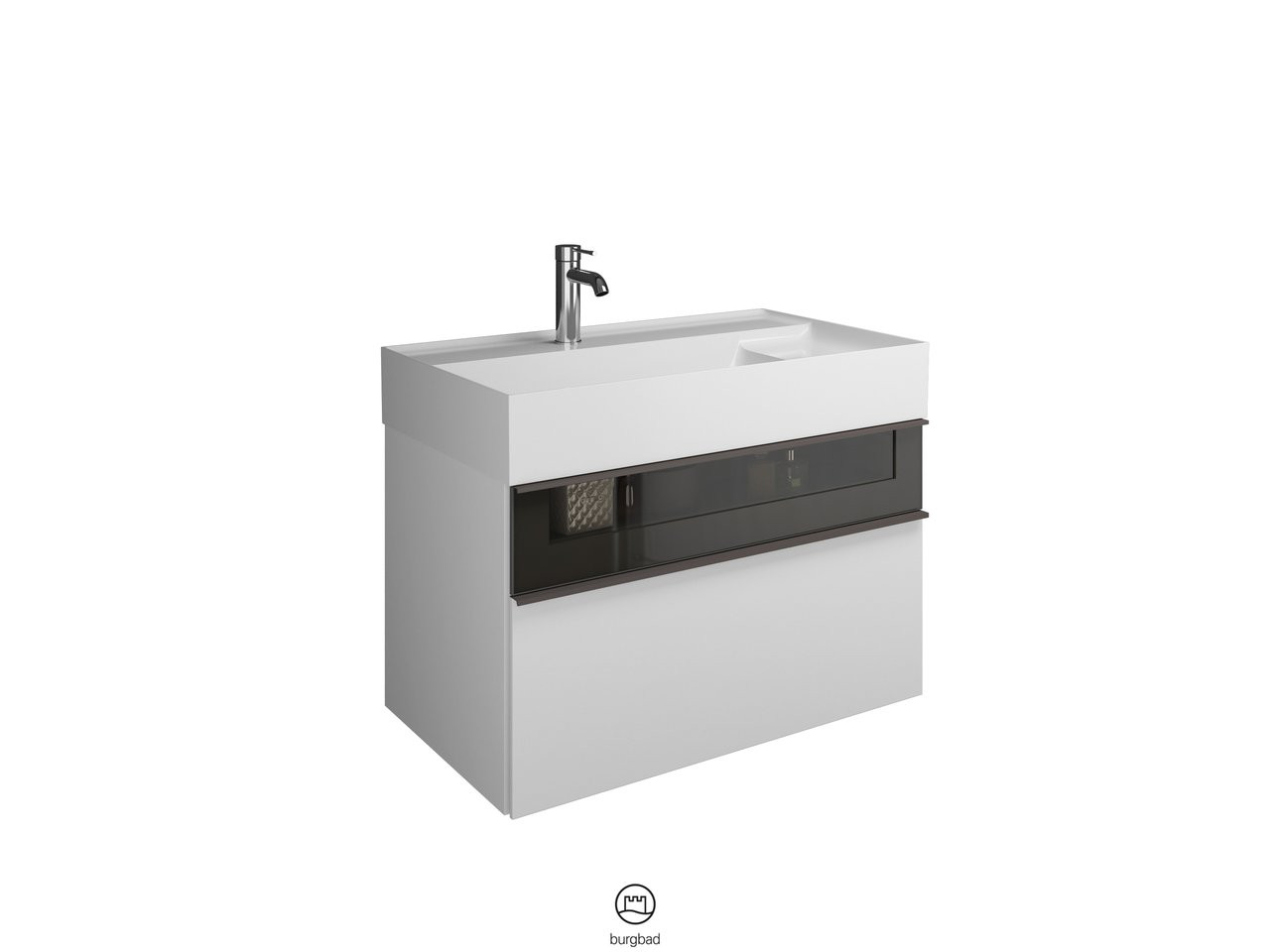 Burgbad Mineralguss Waschtisch-Unterschrank Set Yumo 81,5 x 48 x 47 cm, Acryl, 1 Schublade/Auszug, Ablage rechts, Waschtisch weiß W507775