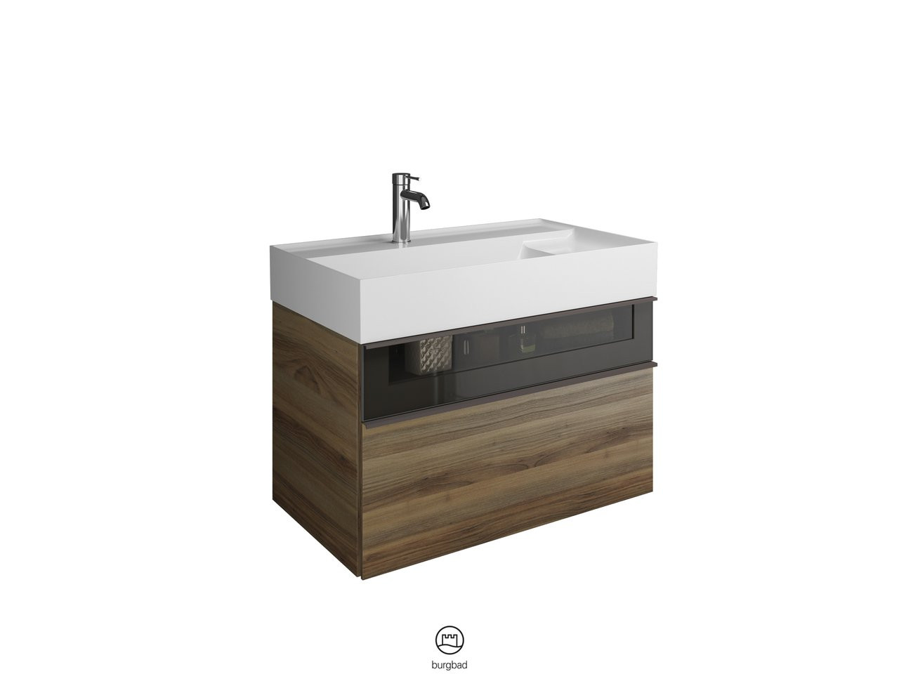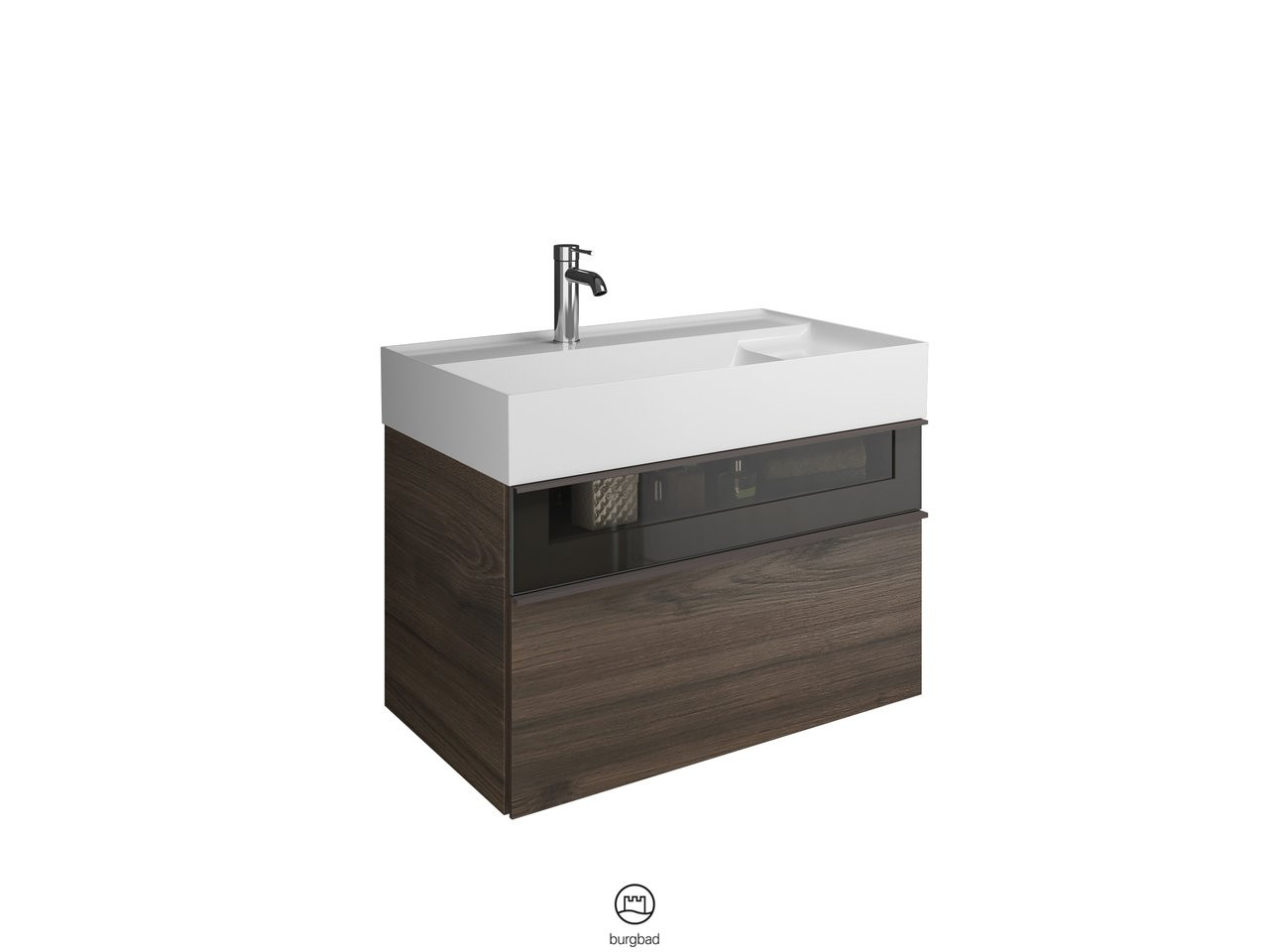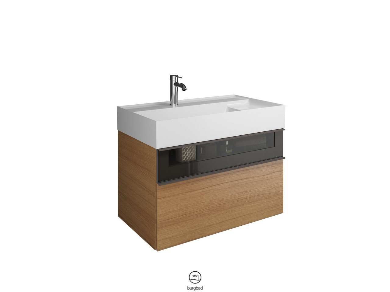 Burgbad Mineralguss Waschtisch-Unterschrank Set Yumo 81,5 x 48 x 47 cm, Acryl, 1 Schublade/Auszug, Ablage rechts, Waschtisch weiß W507775