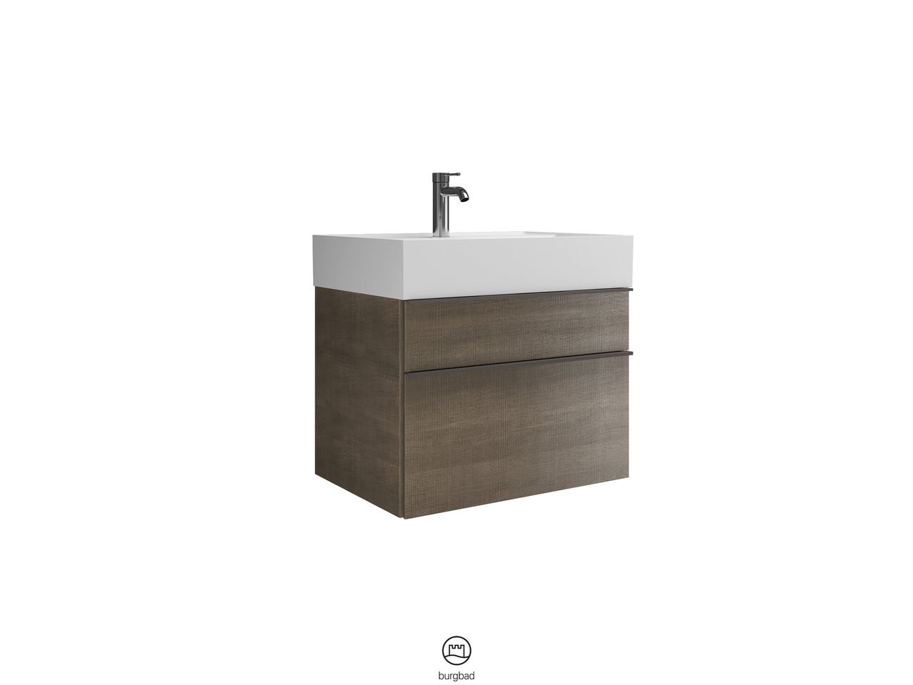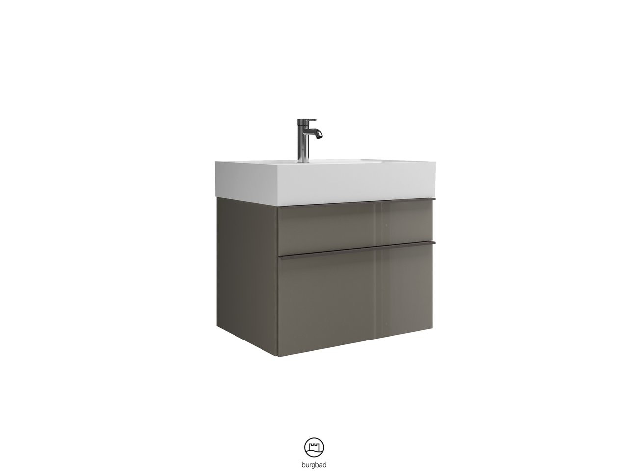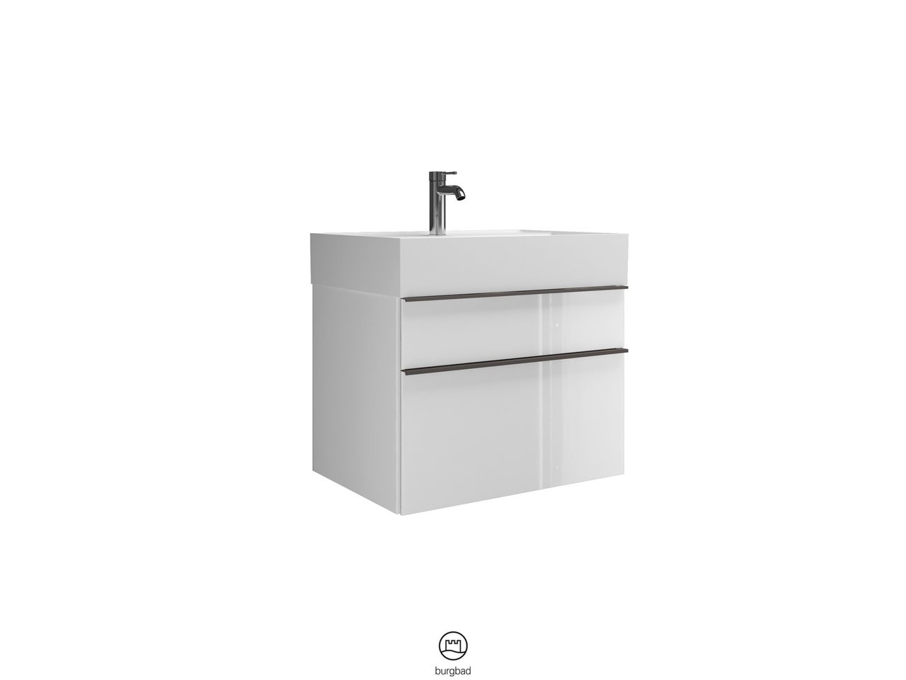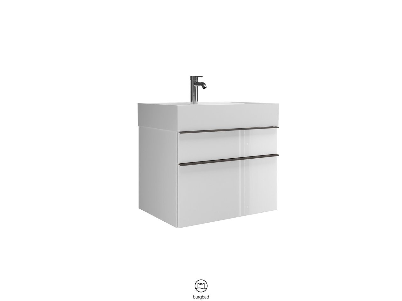 Burgbad Mineralguss Waschtisch-Unterschrank Set Yumo 66,5x61x47cm, 1 Schublade/Auszug, Waschtisch weiß, Acryl