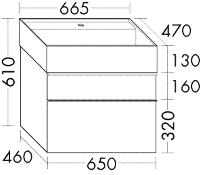 Waschtisch: Muldentiefe 105 mm, Unterschrank: 1 Schublade oben, 300 mm tief, mit Siphonausschnitt, 1 Auszug unten, 350 mm tief, mit cleanFlow