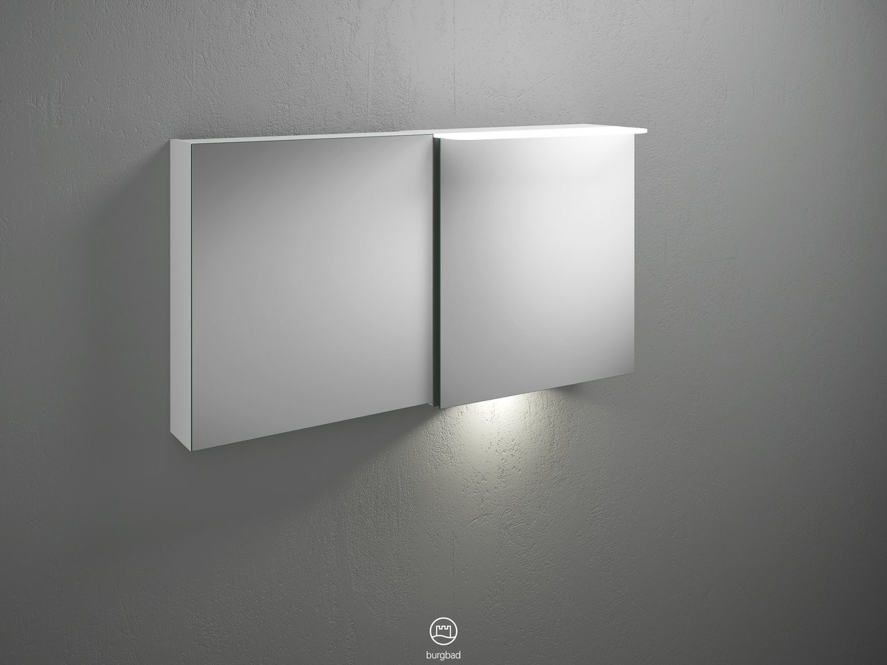 Burgbad Spiegelschrank Badu 120 x 66,5 x 31 cm, Thermo, 2 Türen, horizontale LED-Beleuchtung, Waschtischbeleuchtung W507593