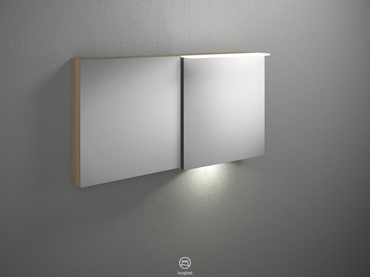 Burgbad Spiegelschrank Badu 120 x 66,5 x 31 cm, Thermo, 2 Türen, horizontale LED-Beleuchtung, Waschtischbeleuchtung