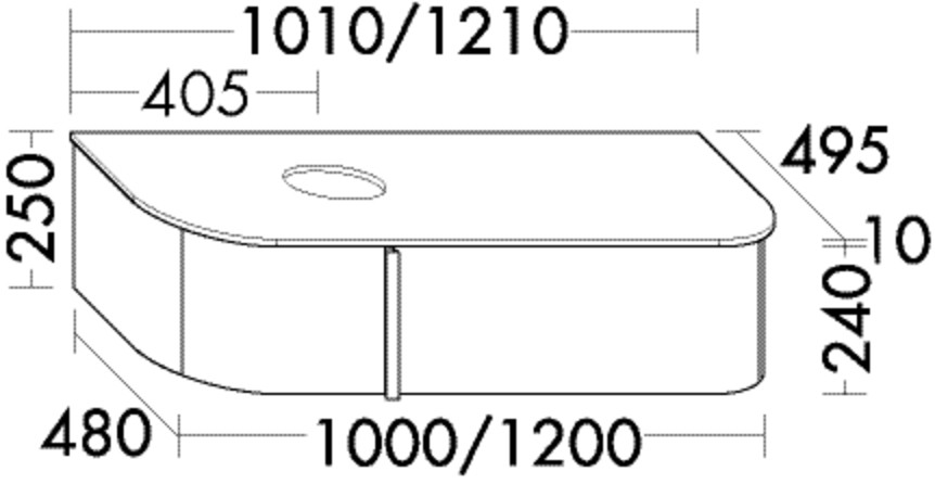 Burgbad Waschtischunterschrank Lavo 2.0 121 x 25 x 49,5 cm, Melamin/Thermoform, 1 Schublade, mit Konsolenplatte W509856