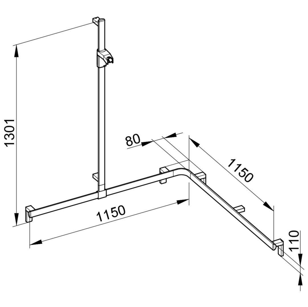 mit Brauseschieber, Brausestange vor Montage frei positionierbar, Höhe 1301 mm, Belastbarkeit 115 kg, mit 2x Befestigungsset Nr. 1