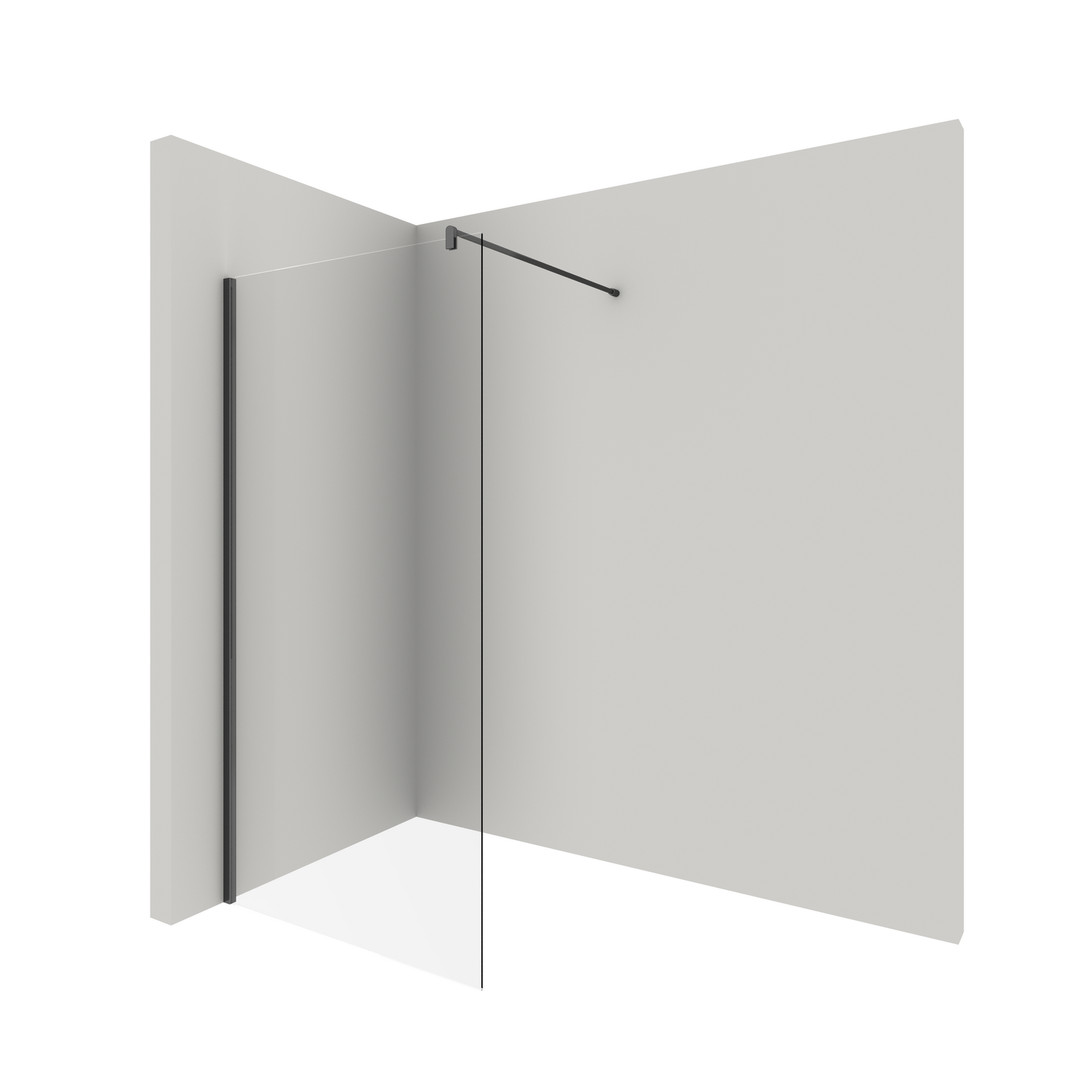 Palme Trennwand WALK-IN mit Wandschiene Viteo 89 x 200 cm, AK ESG transparent, schwarz, auf Fliesenboden