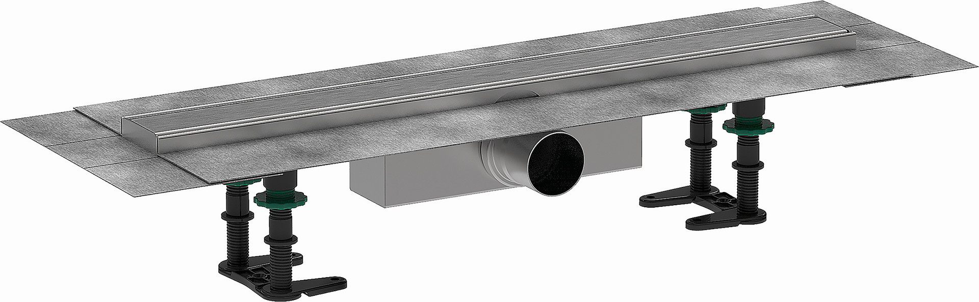 bestehend aus: Fertigset Duschrinne, Installationsset, Siphon, Abdeckungsheber, werkseitig vormontiertes Dichtvlies, vormontierte Dichtmembran, Sperrwasserhöhe, 30 mm, 50 mm, Nenndurchmesser Anschluss DN 50, Richtung Auslass waagerecht, höhenverstellbares Installationsset, höhenverstellbare Abdeckung, Anwendungsbereich Sanierung, Neubau, Fliesenstärke bis 18 mm, geeignet für jede Fliesenart und Fliesenstärke, herausnehmbarer Geruchsverschluss, Abdeckungsheber ermöglicht einfaches herausnehmen des Fertigsets, Art des Geruchsverschlusses: flüssig, Höhe Grundkörper 50 mm, Material Siphon ABS, Montageart frei im Raum, Werkstoffgüte Abdeckung Edelstahl V2A (1.4301), geeignet für Primärentwässerung, Quick Clean Antikalksystem