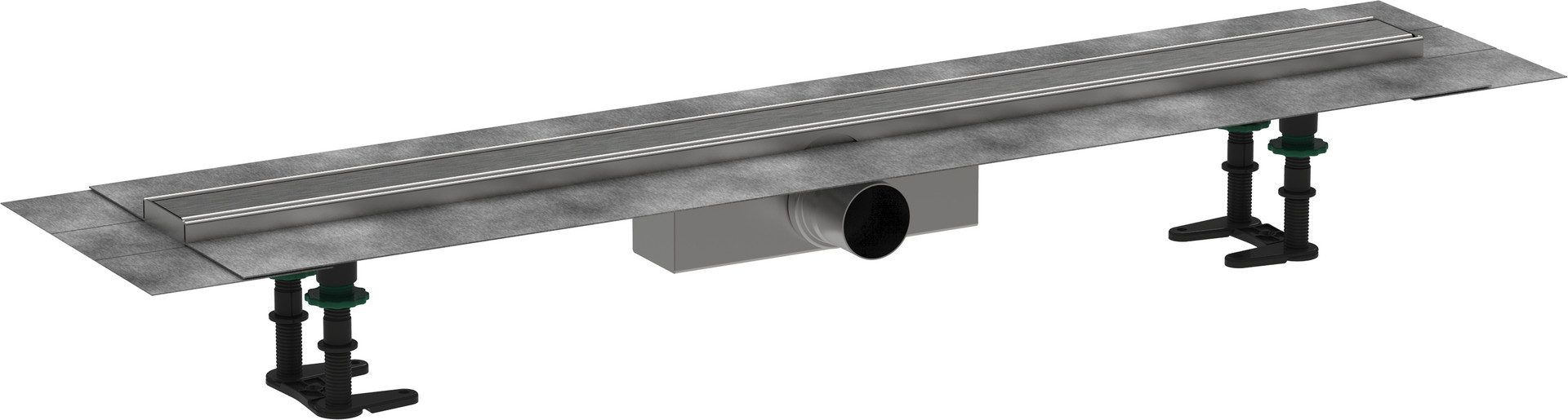 bestehend aus: Fertigset Duschrinne, Installationsset, Siphon, Abdeckungsheber, werkseitig vormontiertes Dichtvlies, vormontierte Dichtmembran, Sperrwasserhöhe, 30 mm, 50 mm, Nenndurchmesser Anschluss DN 50, Richtung Auslass waagerecht, höhenverstellbares Installationsset, höhenverstellbare Abdeckung, Anwendungsbereich Sanierung, Neubau, Fliesenstärke bis 18 mm, geeignet für jede Fliesenart und Fliesenstärke, herausnehmbarer Geruchsverschluss, Abdeckungsheber ermöglicht einfaches herausnehmen des Fertigsets, Art des Geruchsverschlusses: flüssig, Höhe Grundkörper 50 mm, Material Siphon ABS, Montageart frei im Raum, Werkstoffgüte Abdeckung Edelstahl V2A (1.4301), geeignet für Primärentwässerung, Quick Clean Antikalksystem