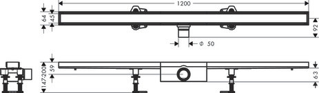 hansgrohe Duschrinne RainDrain Compact 1200 mm, Komplettset, befliesbar, für Standardinstallation, chrom
