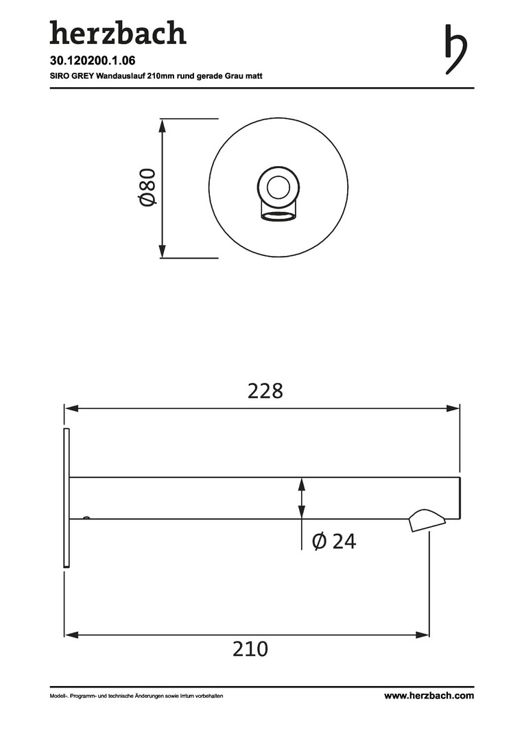 Herzbach Wannen-Wandauslauf Siro 210mm, 1/2", grau matt