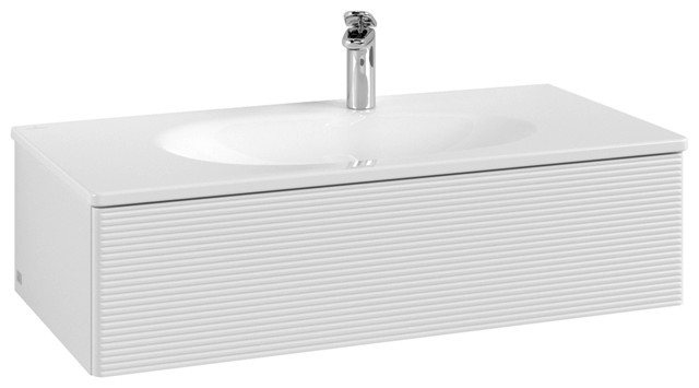 V&B Waschtisch-Unterschrank Auszugsbeleuchtung Antao 98,8x25,6x49,3cm, mit Frontstruktur, glossy white lacquer