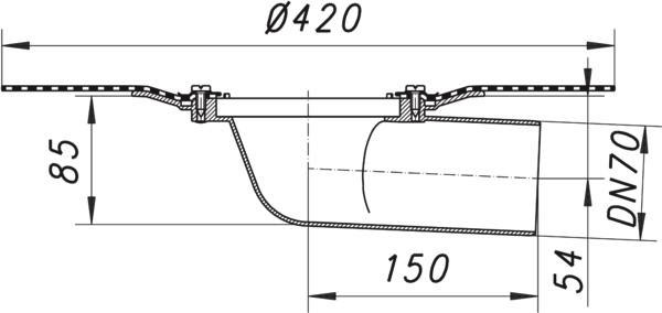 Dallmer Balkonablaufgehäuse 83 DallBit DN 70, Ablaufstutzen 3Grad abgewinkelt