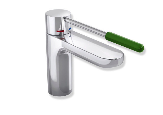 HEWI Waschtisch-Einhebelmischer AQ 800 K verchromt, Griff maigrün, rund, Ausladung 159mm, verlängerter Hebel