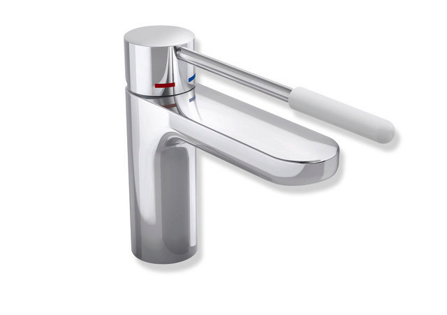 HEWI Waschtisch-Einhebelmischer AQ 800 K verchromt, Griff signalweiß, Ausladung 159mm, verlängerter Hebel, matt