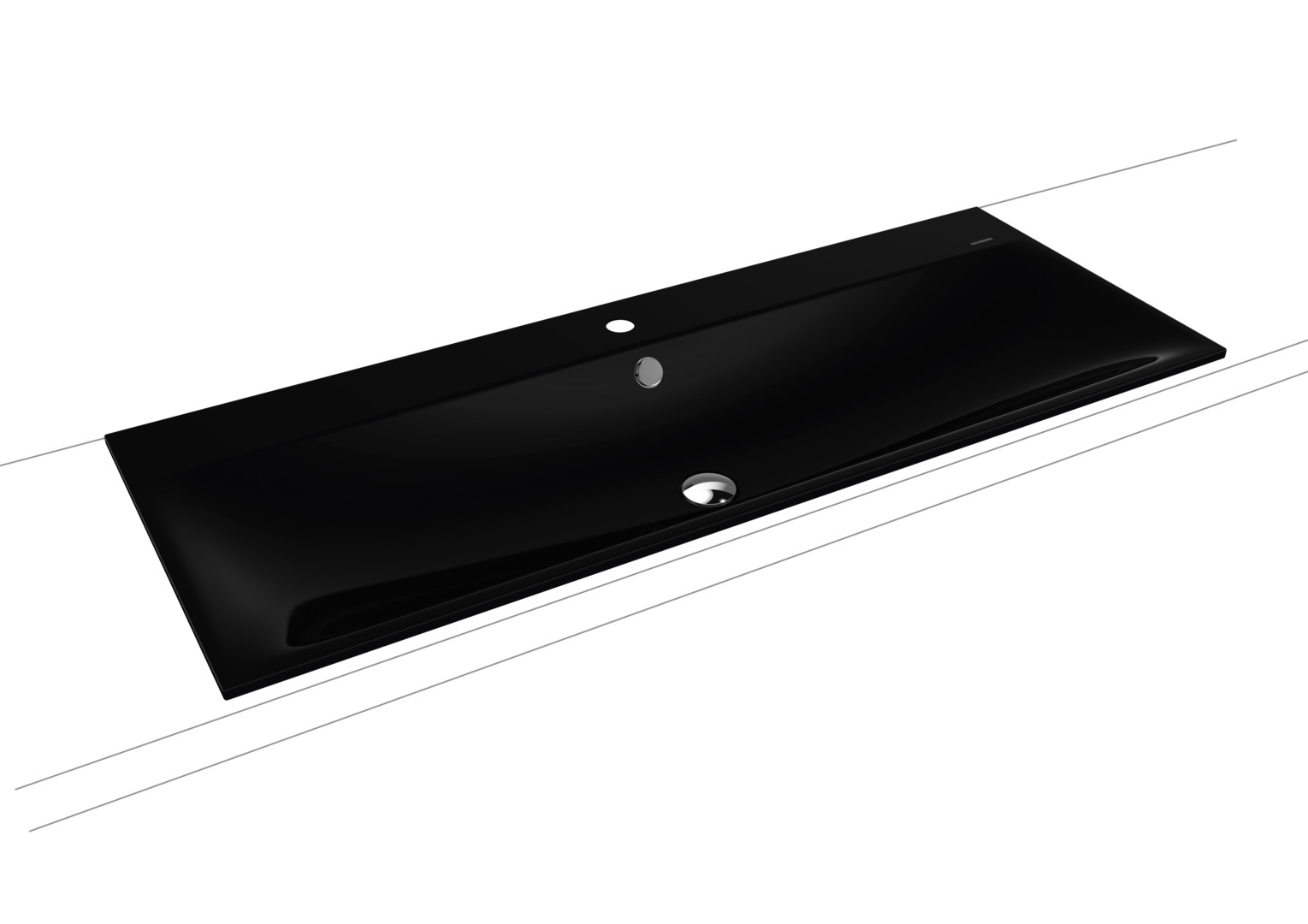 Kaldewei Einbau-Waschtisch SILENIO 3039 120x46cm, 1 Hahnloch, chrom, Perl-Effekt, schwarz W48346