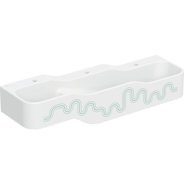 Geberit Spiel/Waschlandschaft Bambini 140cm, 3 Waschplätze, tieferes Becken rechts, weiß-alpin, waldgrün / hellgrün W51355
