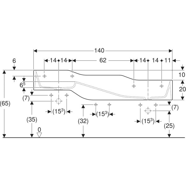 Geberit Spiel/Waschlandschaft Bambini 140cm, 3 Waschplätze, tieferes Becken rechts, weiß-alpin, ohne Dekor W37012