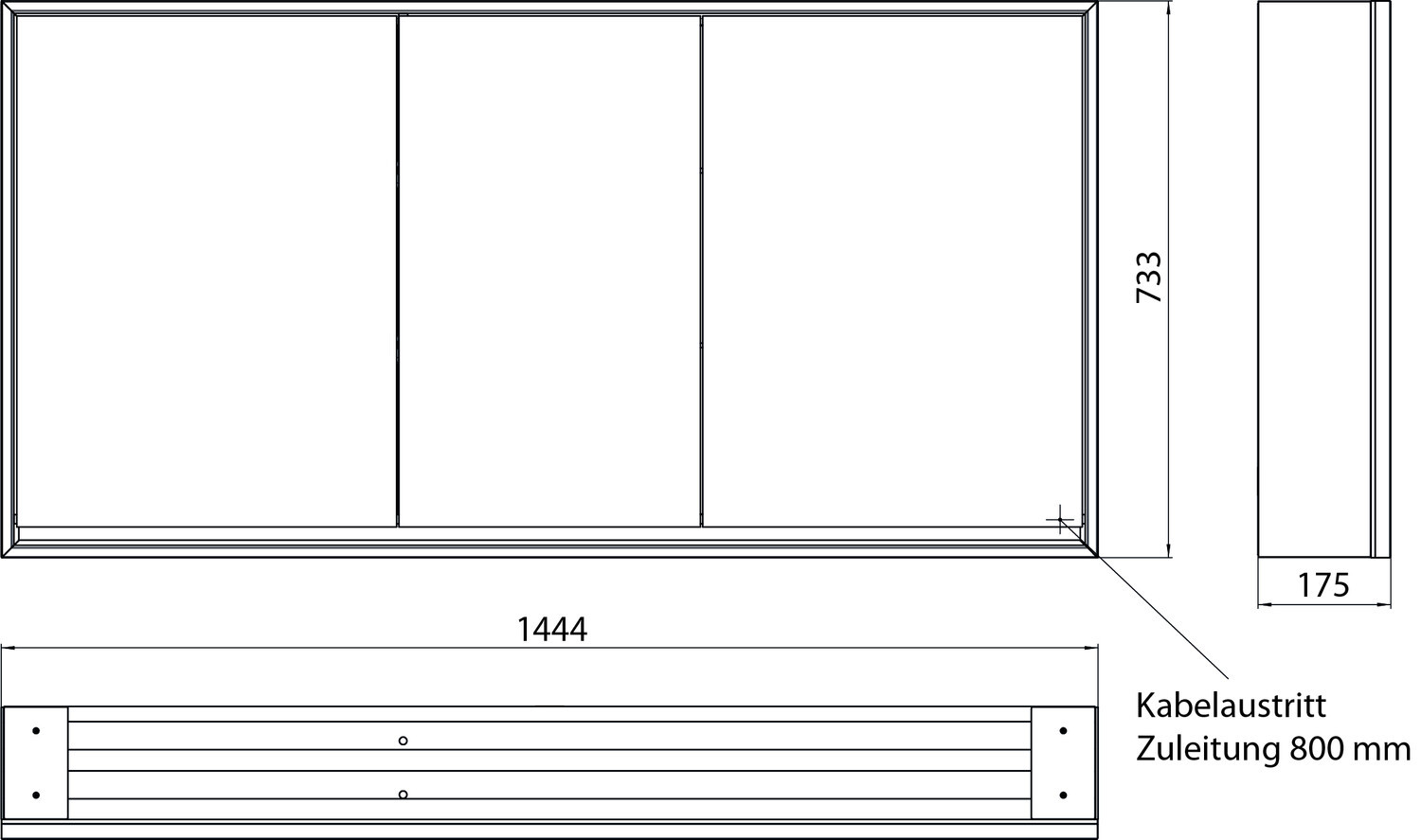 EMCO Aufputz-Lichtspiegelschrank Loft 1400x733mm, LED, 3-türig, aluminium/weiss W451884