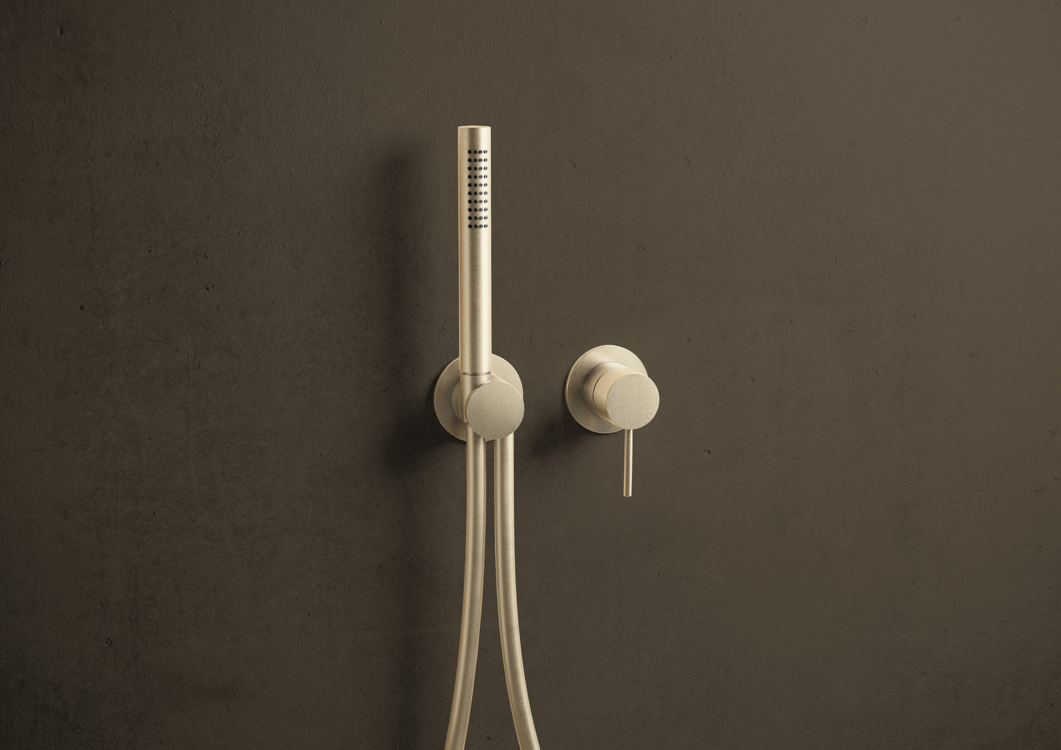 Herzbach Fertigmontageset MODUL7 Brause-Einhebelmischer, mit Stabhandbrause, 1 Verbraucher, brass Steel
