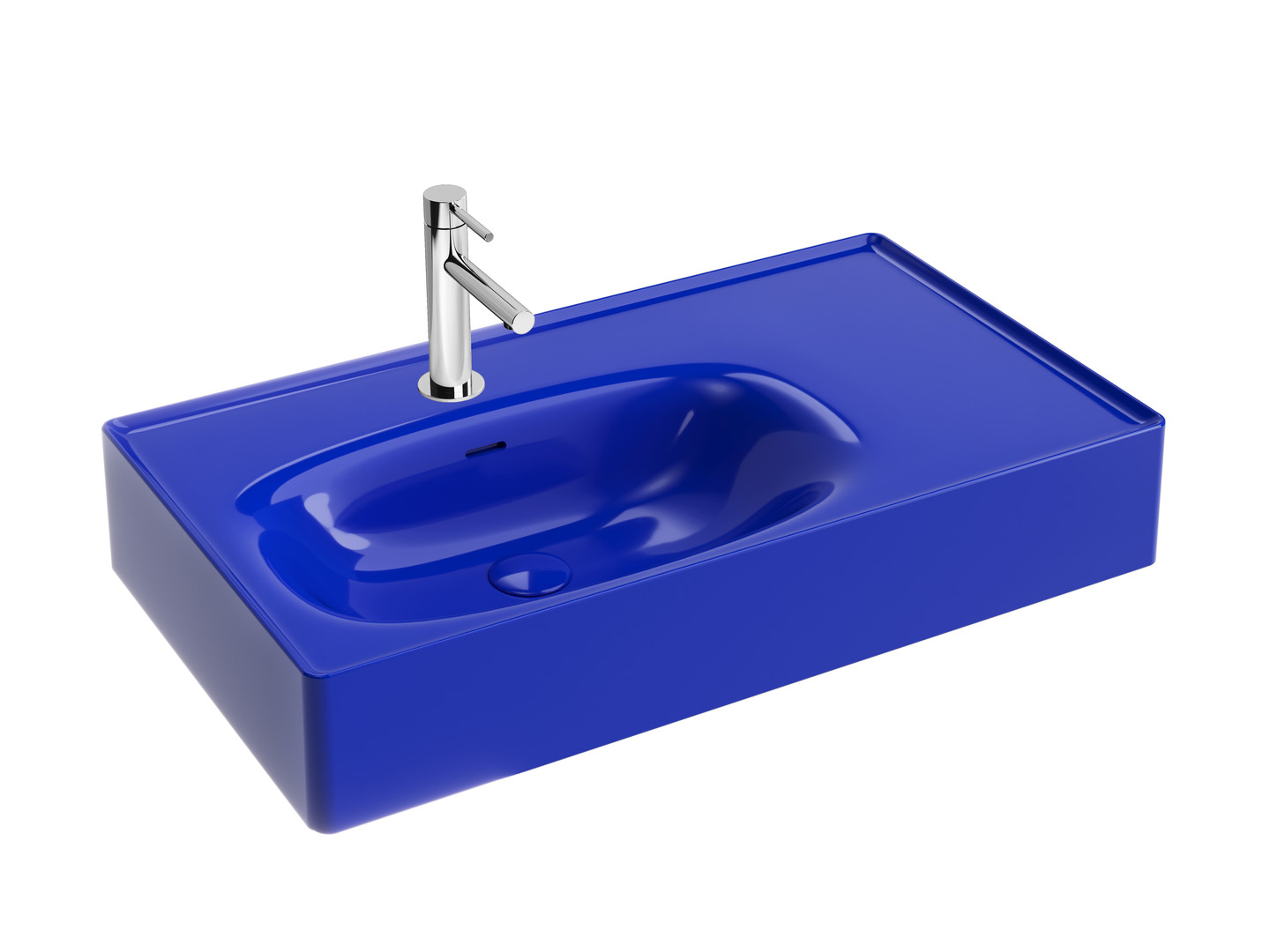 VitrA Bad Aufsatz-Waschtisch Equal asymmetrisch 80x45cm, 1 Hahnloch mittig Becken, Becken links, Ablage rechts, indigo blau VC W58263