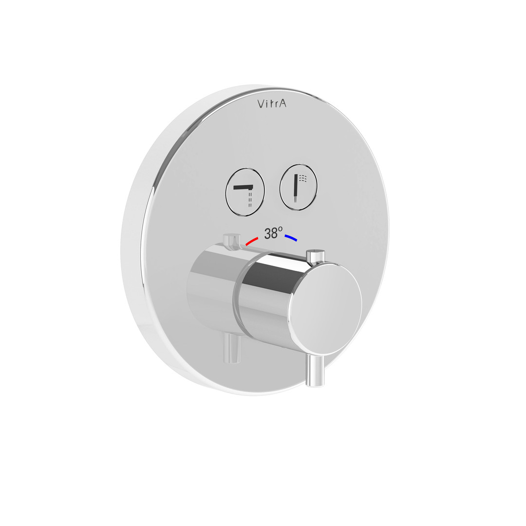 VitrA Bad Fertigmontageset V-Box Root Round UP-Wannenfüll-/Brausethermostat, AquaControl, chrom