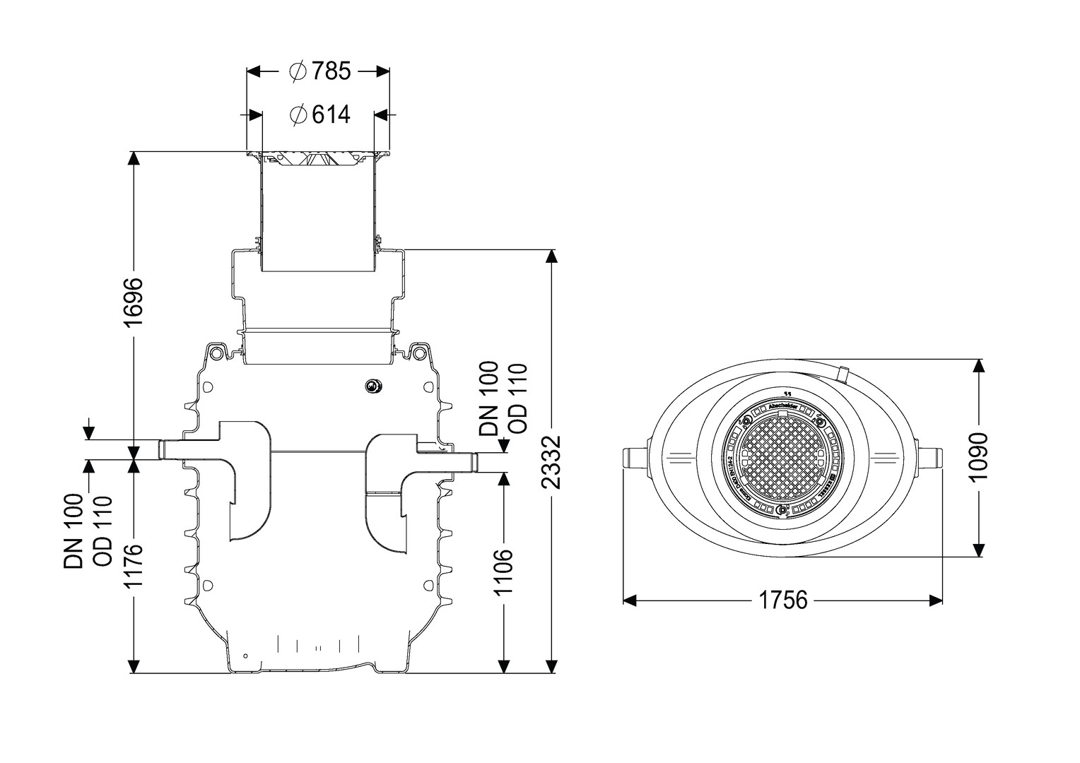 Kessel Fettabscheider EasyClean G NS 1, Einbautiefe 1190-1740 mm, oval, Abdeckung Klasse D W557007