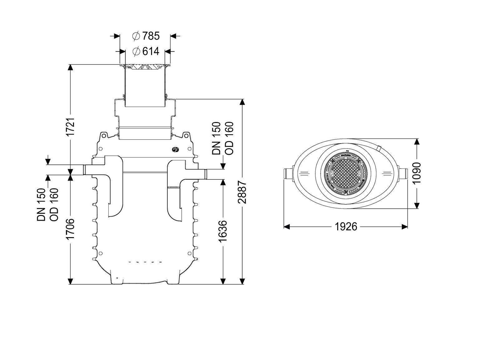 Kessel Fettabscheider EasyClean G NS 1, Einbautiefe 1190-1740 mm, oval, Abdeckung Klasse D W557007