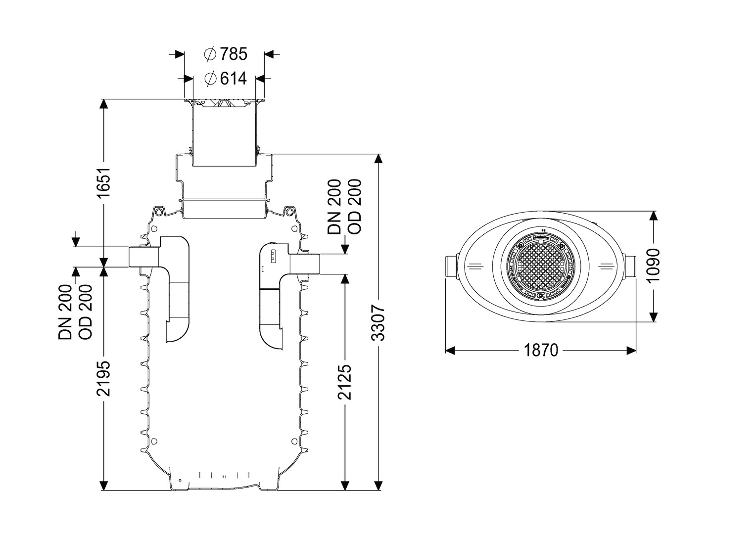 Kessel Fettabscheider EasyClean G NS 1, Einbautiefe 1190-1740 mm, oval, Abdeckung Klasse D W557007