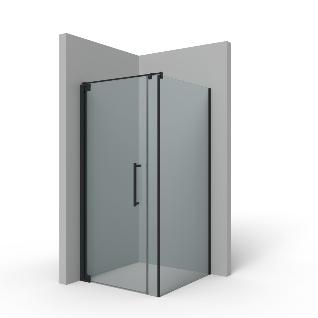 Palme Pendeltür Aprejo Plus 8 zero zu Seitenteil 128,5 x 200 cm, links, AK ESG nano, schwarz, Verlängerungsfixteil, kantig