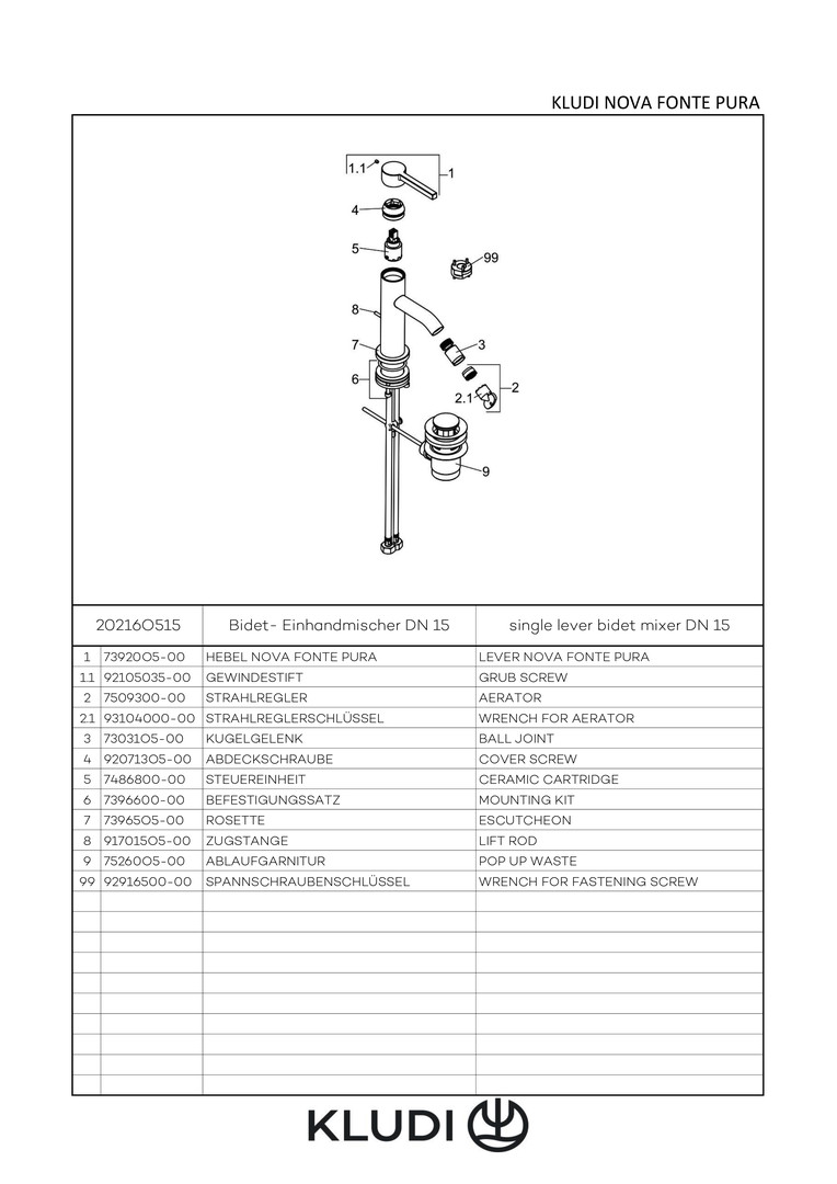 KLUDI Nova Fonte Pura Bidet-Einhebelmischer mit Ablaufgarnitur, chrom W324485