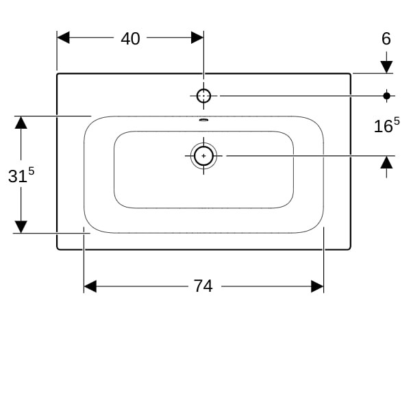 Geberit Möbel-Waschtisch Renova Plan 60 x 48 cm, weiß, mit Hahnloch, mit Überlauf W50024