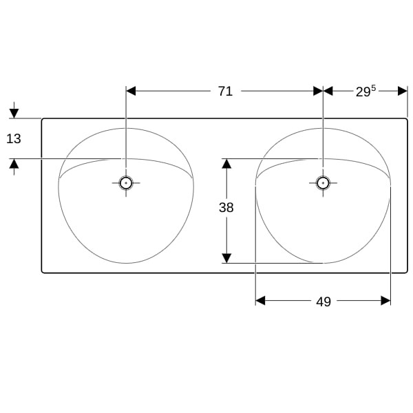 Geberit Doppel-Waschtisch Preciosa 130x55cm, mit 2 Hahnloch, ohne Überlauf, weiß W50543