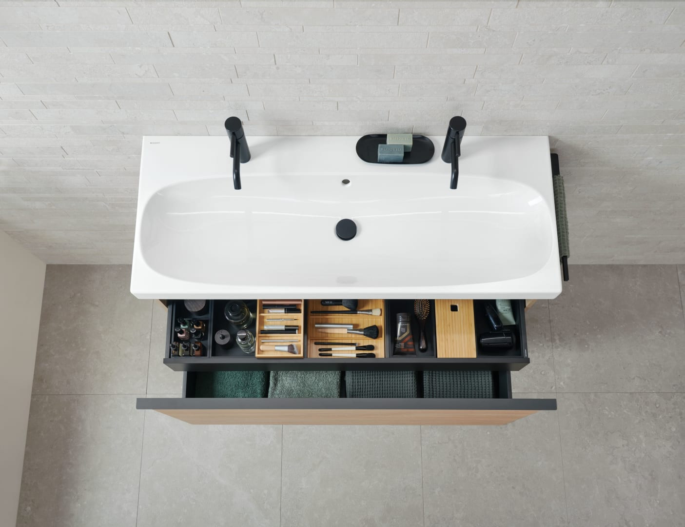 Geberit Waschtisch-Unterschrank Acanto 1 Schublade, 1 Innenschublade, Breite 119cm, Eiche / lava matt