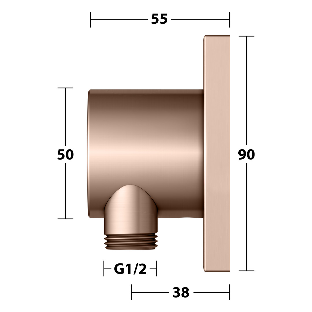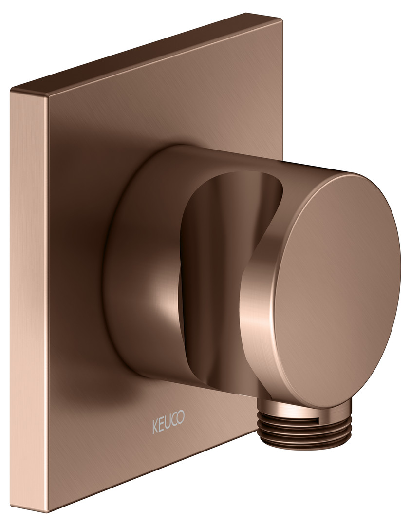 KEUCO Schlauchanschluss rotgold gebürstet, Rosette eckig, mit Brausehalter