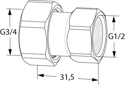 Heimeier Anschlussverschraubung DN15, G3/4xG3/4, Innengewinde, feilaufende Mutter W805850