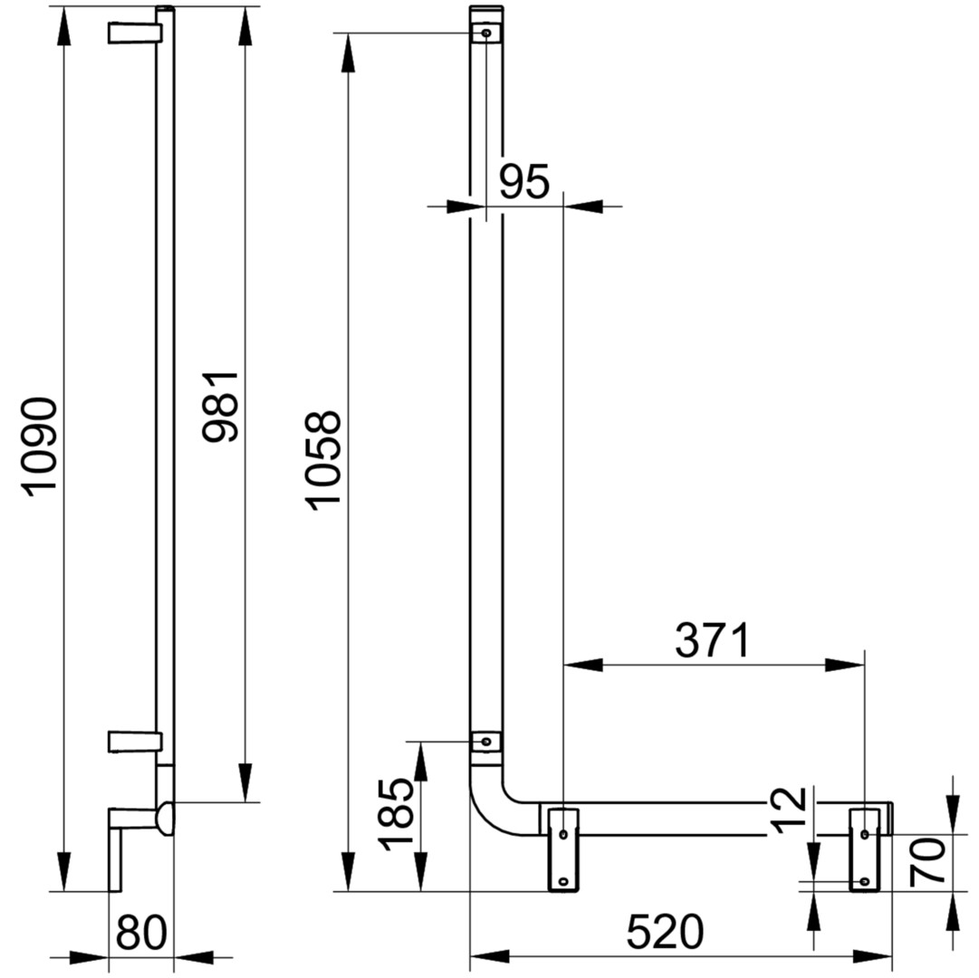 KEUCO Winkelgriff AXESS 90Grad, linke Ausführung, verchromt, 520 x 1090 mm, verchromt