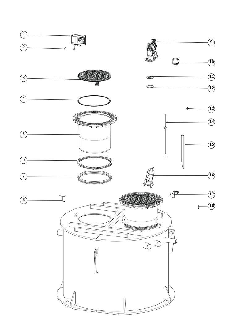 aus Kunststoff, Einbau für frostfreie Tiefe 800 mm, Einbau bis Grundwasser GOK, min. Einbautiefe erreichbar durch Ablängen des Aufsatzstückes, mit Fettabscheider im Wickelrohr, mit integrieter Probenahme, Pumpstation in Nassaufstellung mit Pumpen GTK 1300-S1 (NS 7 und 10), GTK 1400 (NS 4), teleskopisch höhenverstellbares Aufsatzstück aus Kunststoff, Abdeckung nach DIN En 124 aus Guss (PKW- bzw. LKW-befahrbar) geruchsdicht verschlossen, Auslieferung Abscheider komplett montiert, Pumpen separat, Zubehör Schichtdicken-Messgerät für Fette SonicControl
