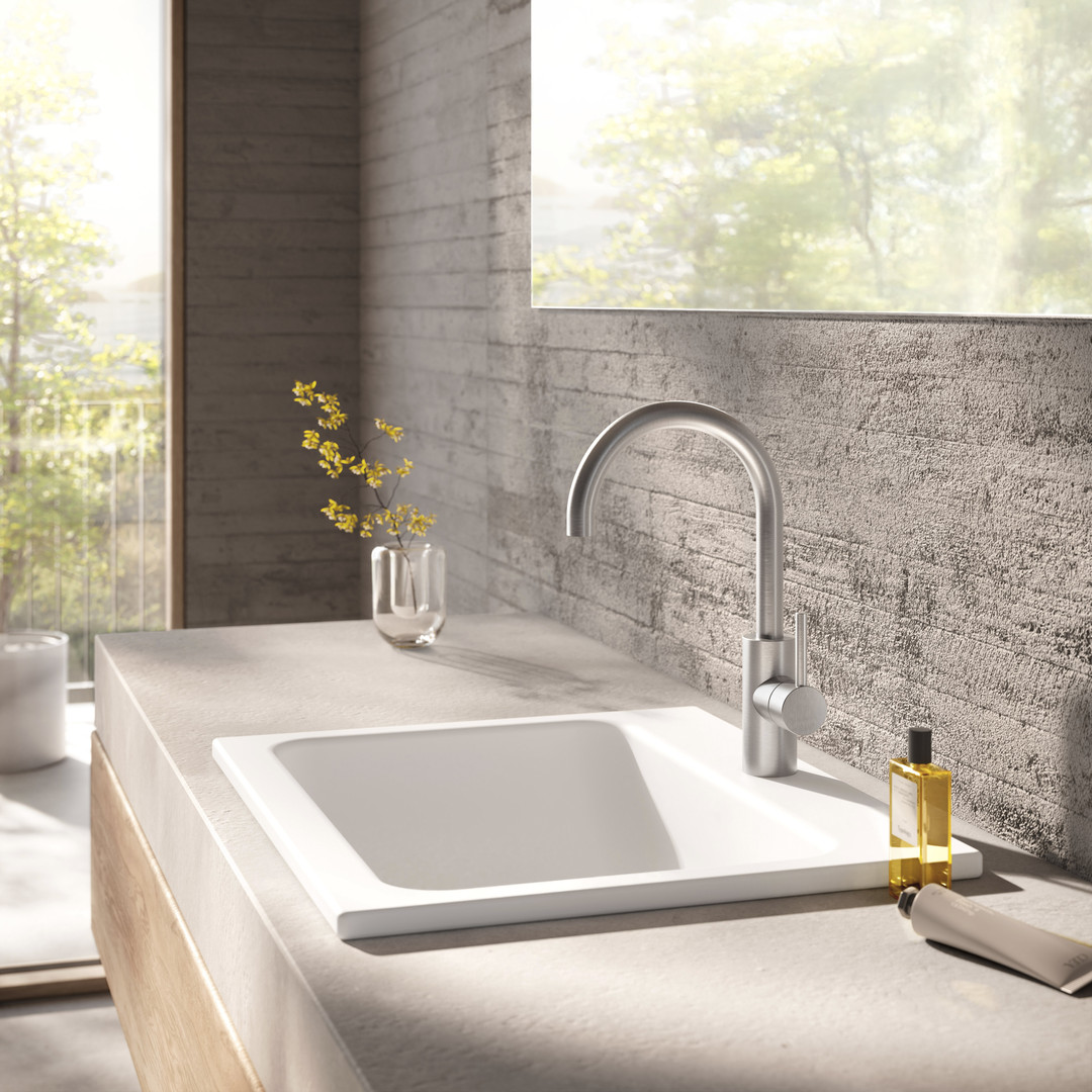 Herzbach Waschtisch-Einhebelmischer Deep L-Size, ohne Ablaufgarnitur, Edelstahl gebürstet W919594