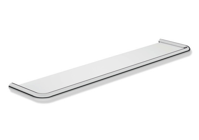 Ablage mit umlaufendem Rand und fest eingespannter Glasplatte, aus hochwertigem Edelstahlrundrohr ø 18 mm, Ablagefläche aus Glas (4 mm) von der Unterseite matt sandgestrahlt, zur Wandmontage, verdeckte Befestigung, 618 mm breit, 134 mm tief, Achsmaß 600 mm, mit korrosionsfreiem HEWI Befestigungsmaterial
