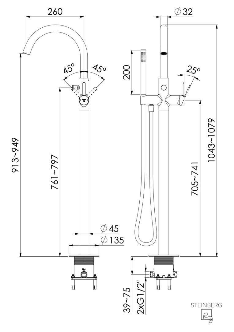 Steinberg Fertigmontageset Serie 341 Wannen-Armatur, Ausladung 260mm, matt black 269387