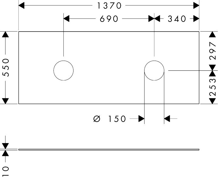 hansgrohe Konsole Xevolos E 1570 x 550 mm, mattweiß, 2 Ausschnitte W955153