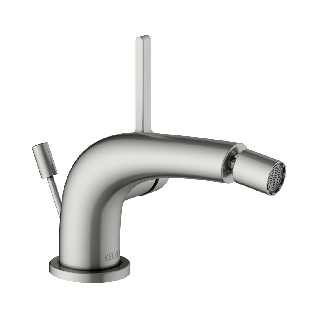 KEUCO Bidet-Einhebelmischer Edition 400 Ausladung 127mm, mit Ablaufgarnitur, edelstahl-finish W971613