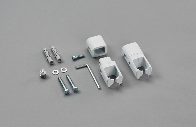 für Universal, Zeno einlagig, 2x Wandkonsolen bestehend aus Wandhülse (38 mm), Schiebeteil, Klemmteil für 4-Kant-Profil, Entlüftungsventil 1/4", Befestigungsmaterial, Montageanleitung, für Wandabstand 53 mm